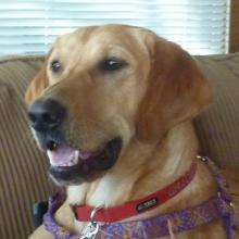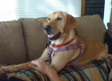 Gracie has been with us now for seven weeks and we are so happy to have her. If I didn't already like her name Gracie I would have renamed her "Sunny" because she is like a ray of sunshine in our lives. She is well worth the extra effort she requires. I was struck by her when I first read her initial web page and even though I didn't think I was looking for a yellow lab, I could not get her out of my mind. So, I began researching her condition and gradually became convinced that we could provide her forever home. Fortunately her foster mom agreed! We are grateful to RAGOM for all the medical care and tests she received while in foster care and for bringing her into the RAGOM family in the first place. Also for all the conversations, support, and information we received from her foster mom.